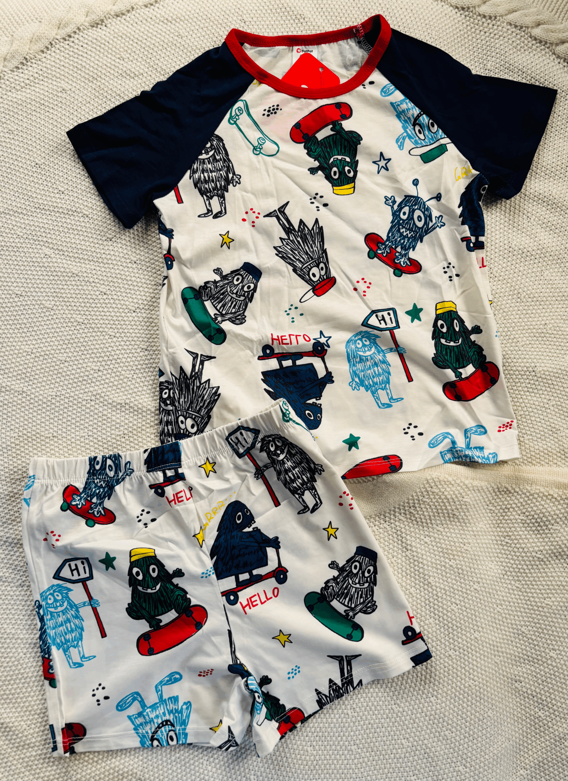 For the little one who wakes up ready to play!A soft and breathable short PJ set covered in skateboarding, perfect for warm nights and kid play times.