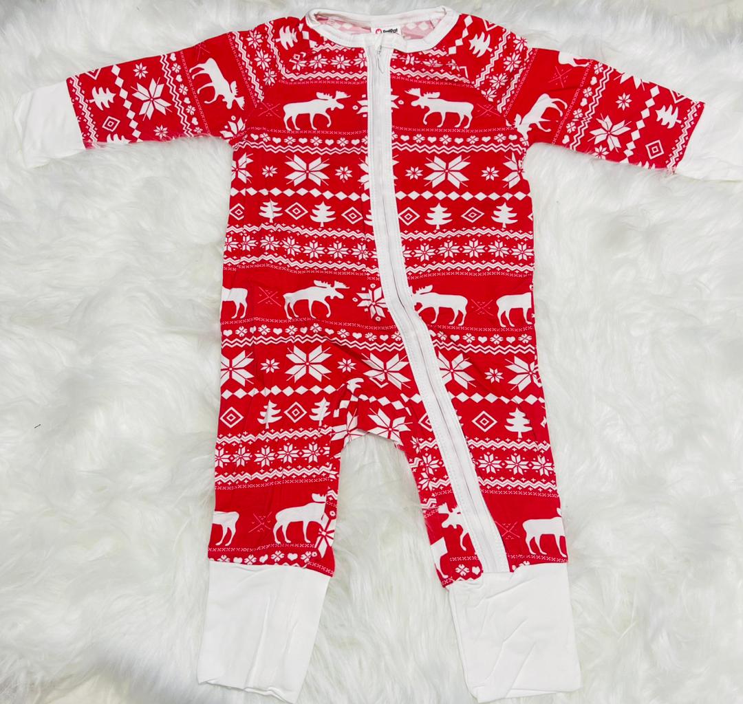 This brightly coloured sleepsuit with a smooth front zip for easy dressing, making quick changes a breeze , whether during the festive season or everyday moments with your little one.
